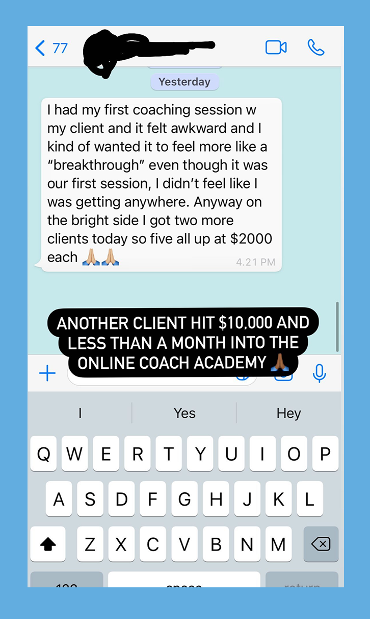 You could have a thriving online coaching business that generates $5000 - $10,000 per month consistently (without you feeling burnout and hating how much you're working).