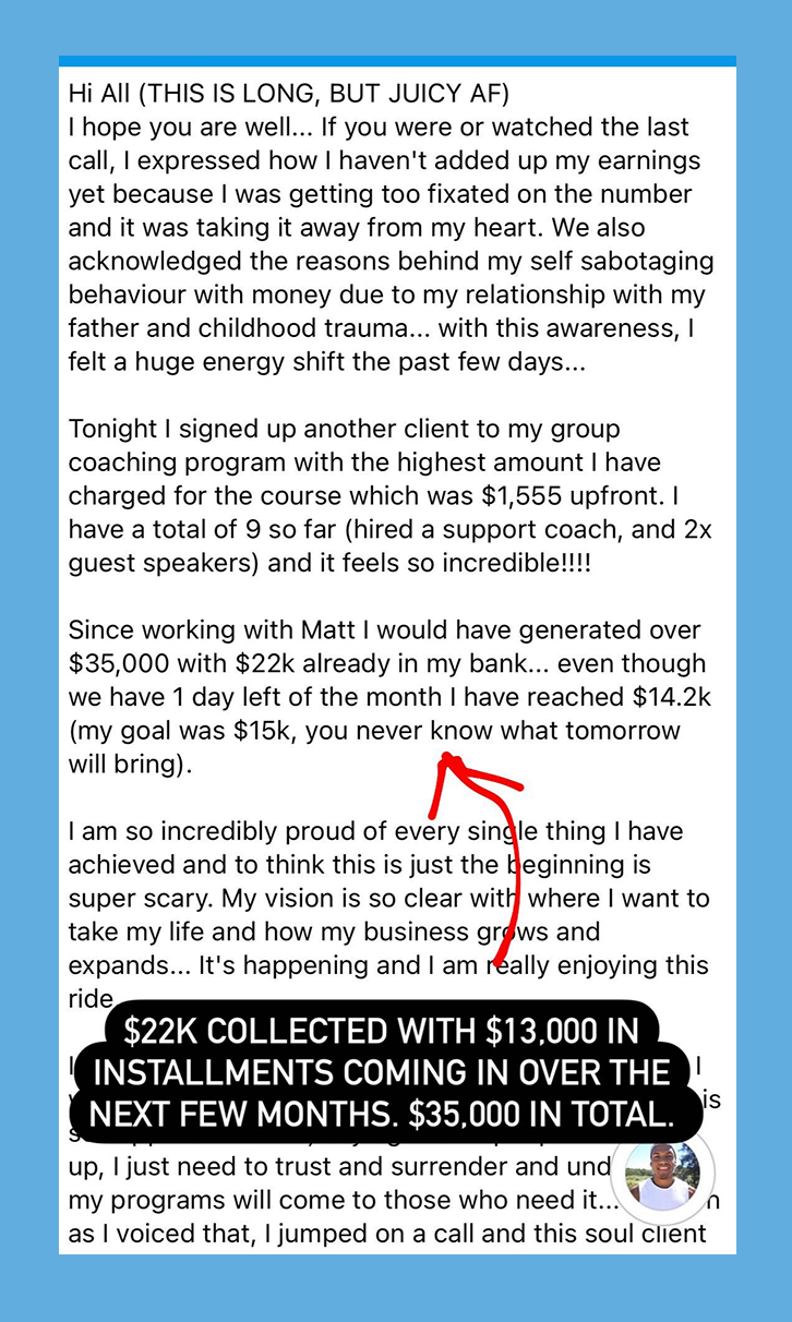 I saw myself go from broke, to growing my business to $10,000 months in less than 30 days of getting guidance.