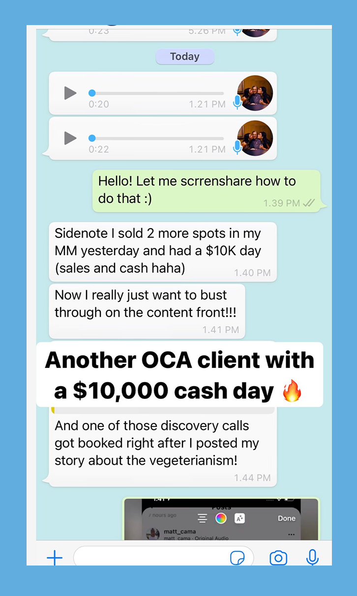 “My revenue from OCA was $60,000 which I had to previously grind for in the past!"Â